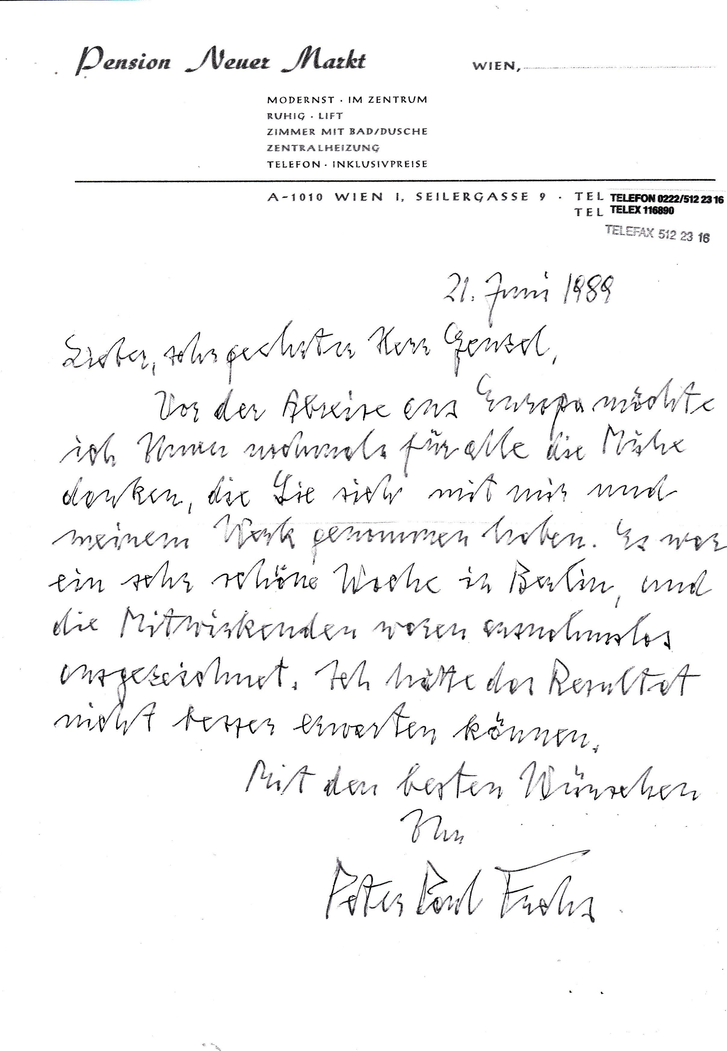 Peter Paul Fuchs an Hans-Jochen Genzel (1989-06-21):
